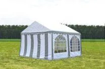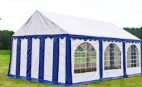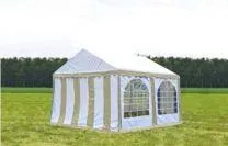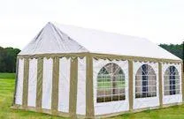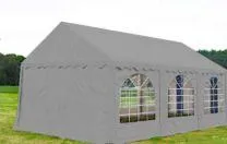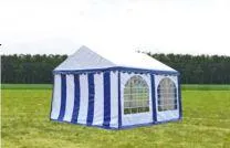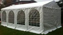 Deze feesttenten welke ook weleens worden ingezet als opslagtenten, worden geleverd met een waterdicht PVC tentzeil en een brandvertragend certificaat! Deze partytenten worden compleet nieuw geleverd inclusief afneembare zijdelen met ramen en 2 oprolbare ingangspanelen (met rits) en met alle bevestigingsmaterialen.
